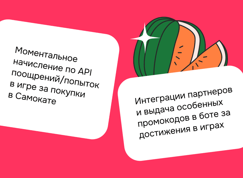 За заказы из подборки арбузов и дынь чат-бот выдавал попытки-семечки, которые можно было «посадить» на своем огороде и сыграть в мини-игру в механике «три в ряд» с разными сочными дынями и арбузами.