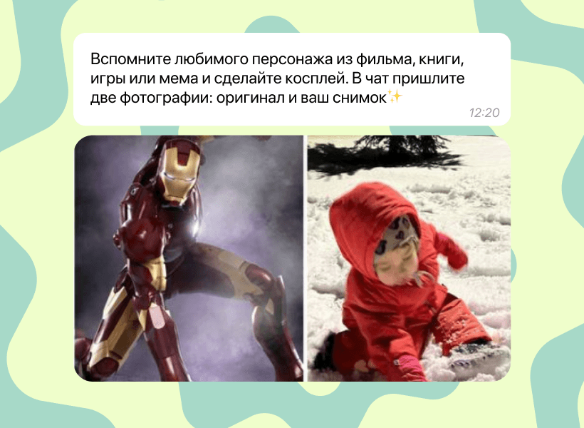 В итоге участники: записывали подкасты о любимых фильмах, пробовали себя в стрит-фотографии, делали арт-завтраки, косплеили любимых персонажей и сочиняли мемы.