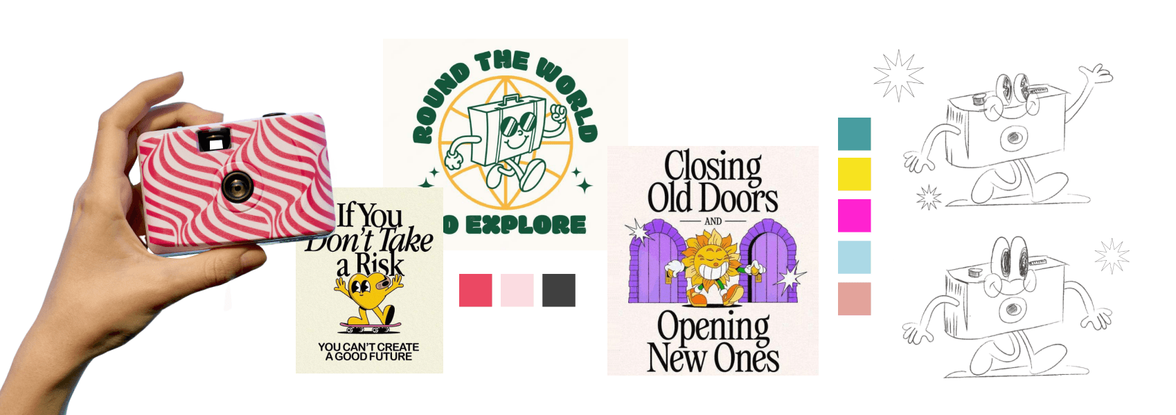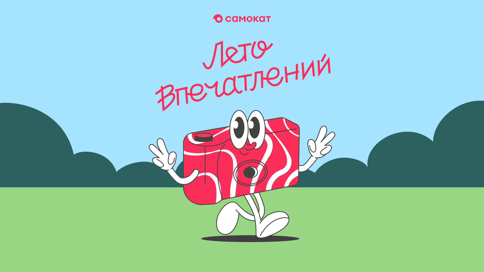 Проработали особого персонажа — проводника в летние впечатления в образе фотокамеры. За основу взяли общий летний KV Самоката, в первую очередь подхватили заданный в концепции ретро-вайб.