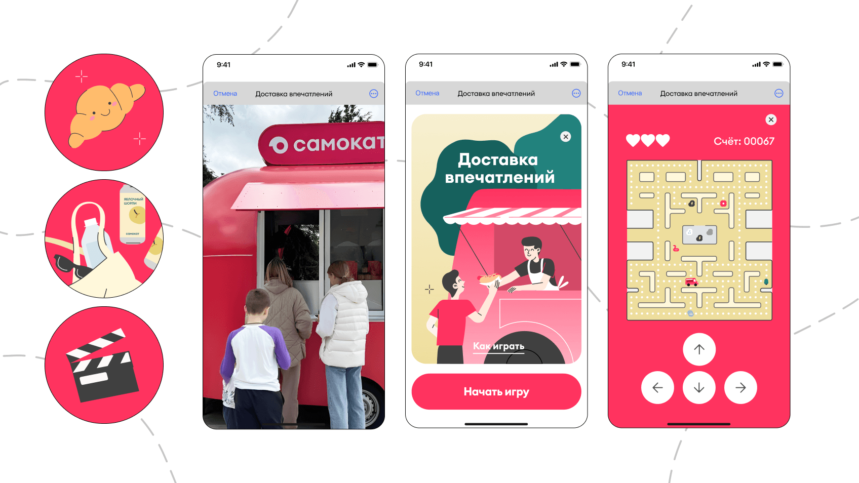 Создали чат-бот с возможностью выбрать город и узнать всю программу на лето: бренд-точки Самоката на фестивалях, пикник-стейшены в парках и путешествие брендированного фудтрака. Каждая ветка рассказывала про подарки и выгоды при посещении оффлайн-точек и предлагала поиграть в мини-игры.