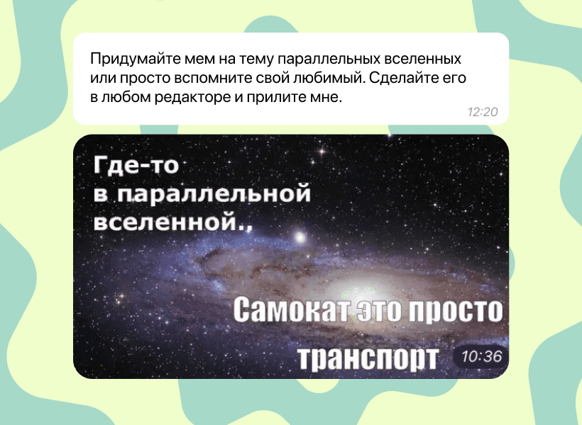 экспериментальный бот в формате челленджа «Я никогда НЕ», задания которого дают возможность получить новые впечатления, попробовать неожиданные хобби и поучаствовать в розыгрыше ценных призов